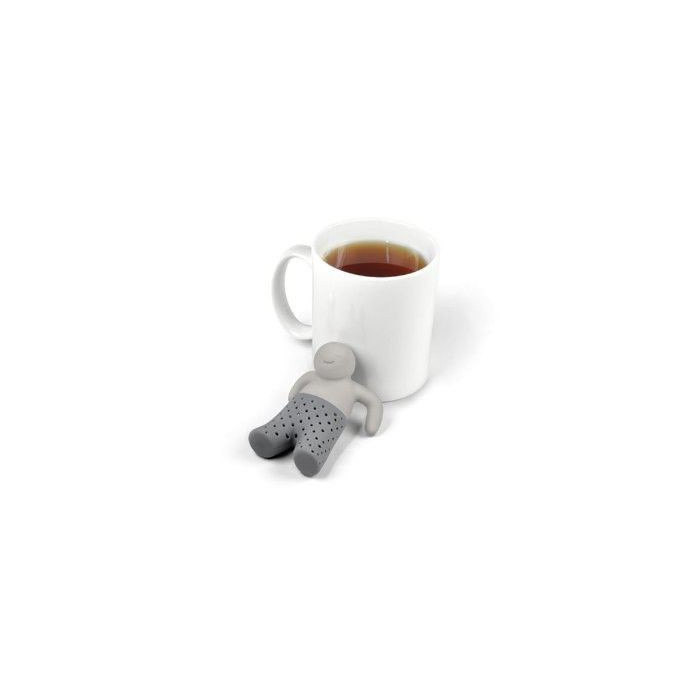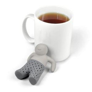 Infuseur humoristique en silicone qui a la forme d'un petit personnage qui prend son bain dans votre tasse de thé chaud !