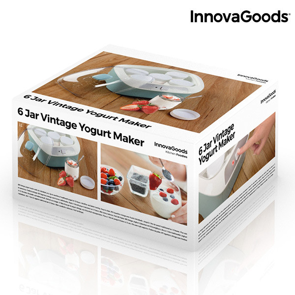Avec l'originale machine à yaourt vintage avec 6 pots InnovaGoods Kitchen Foodies vous pourrez faire des yaourts maison sains et savoureux confortablement et facilement ! De plus, vous pourrez ajouter une multitide d'ingrédients, comme des biscuits, de la confiture, des morceaux de fruits, etc. La manière la plus saine de manger un yaourt selon vos goûts !