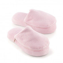 Vous en avez marre de tâcher vos pantoufles lorsque vous vous mettez du vernis sur les pieds ? Les chaussons viscoélastiques pour pédicure sont la solution. Avec ces chaussons convertibles, vous pourrez mettre du vernis sur vos pieds tranquillement grâce au séparateur d'orteils intégré. Une fois le vernis sec, fermez la fermeture éclair et transformez les en pantoufles pour marcher à la maison. Doux et très confortable, le viscoélastique s'adapte parfaitement à vos pieds. Mesures approx.: 28 x 4 x 13 cm.