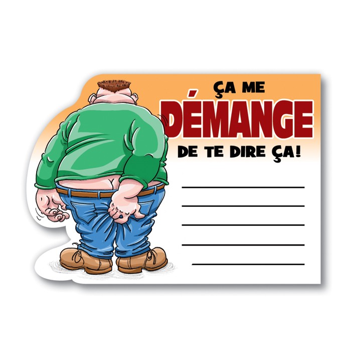 Le bloc-notes humoristique est marqué avec le message "ça me démange de te dire ça".