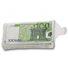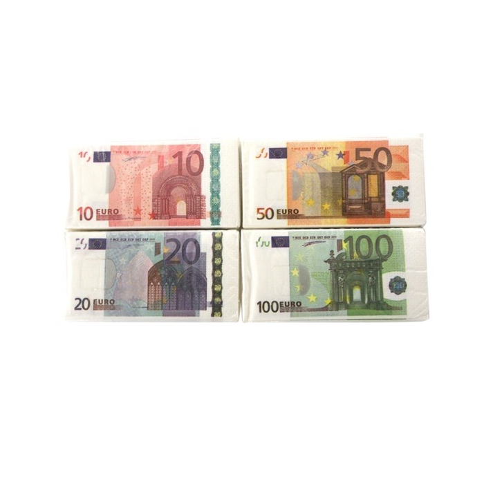 Le paquet de mouchoirs original représente des faux billets en euros.