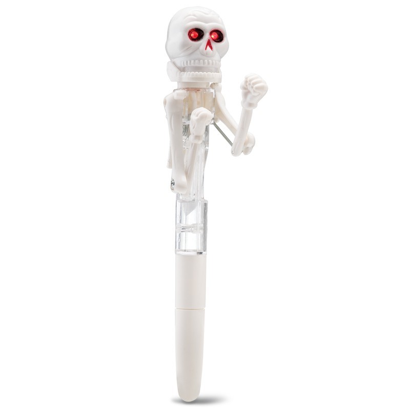 Ce stylo original dispose de 2 boutons pour actionner les bras du squelette.