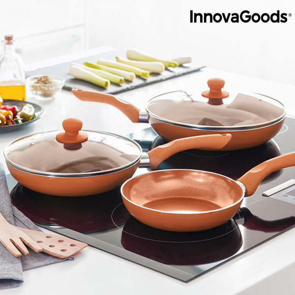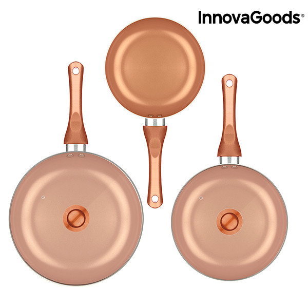 Obtenez ce qu'il y a de mieux pour votre cuisine et ne manquez pas le nouvel ensemble de poêles Copper-Effect InnovaGoods Kitchen Cookware (5 pièces) ! Des poêles de qualité, parfaites pour cuisiner sainement avec confort et rapidité.