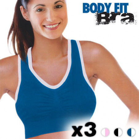 Le Pack comprend 3 soutiens-gorge Body Fit Bra : 1 bleu, 1 noir et 1 blanc.