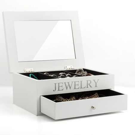 Une superbe boite coffret à bijoux en bois avec tiroir et miroir pour ranger les bagues, colliers, bracelets... et les essayer en se regardant dans le miroir !