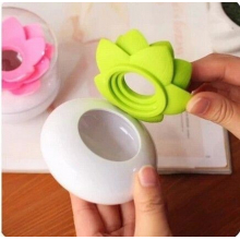 Le distributeur original permet de mettre les Cotons Tiges dans la fleur de lotus pour former une fleur verte complète.