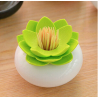 Un distributeur de coton tige original en forme de fleur de lotus de couleur verte, il peut également servir de présentoir pour les pics apéritifs.