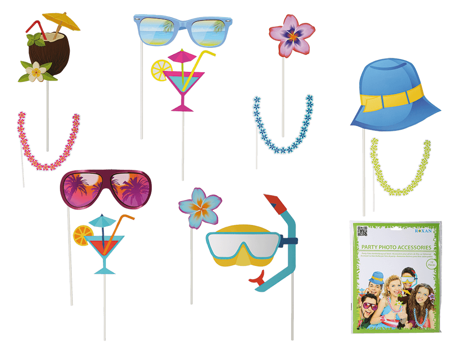 Kit de 12 accessoires de PhotoBooth, pour une séance photo fun et décalée sur le thème des vacances. Apportez du pep's et de la folie à votre soirée, et organisez une séance photo avec vos amis.
